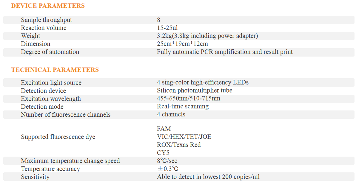 Baicare Ultrafast QPCR Detection system FQ-8A adopts "real-time fluorescent quantitative PCR technology" combined with "real-time dynamic temperature control technology", which can be used in various fluorescent quantitative PCR detection projects to achieve rapid nucleic acid detection. With powerful functions and flexible operation, PCR amplification and detection experiments of DNA and RNA can be completed in a compact and portable environment. With the anti-pollution open lid design, Baicare Ultrafast QPCR detection system provides a easy, fast and safe experimental operation. Combine with the efficient PCR Detection Kit and Neuclec Acid Releaser, Baicare provides the complete solution for SARS-CoV-2 Testing and other projects.
